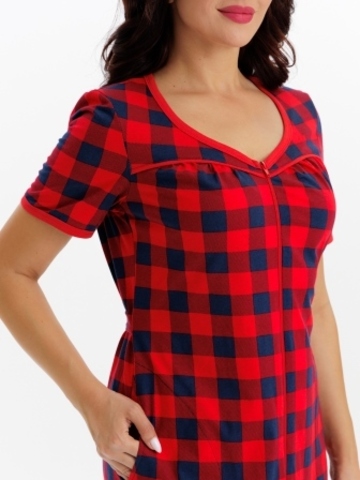 Стильный и яркий халат прямого силуэта на молнии. Модель с V-образным вырезом, карманами, с короткими рукавами отдекорирована однотонной бейкой. А пояс в боковых швах изящно подчеркивает талию. Идеально подходит как для дома, отдыха, так и на каждый день,
