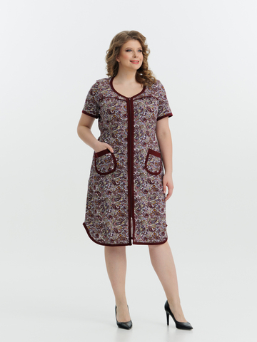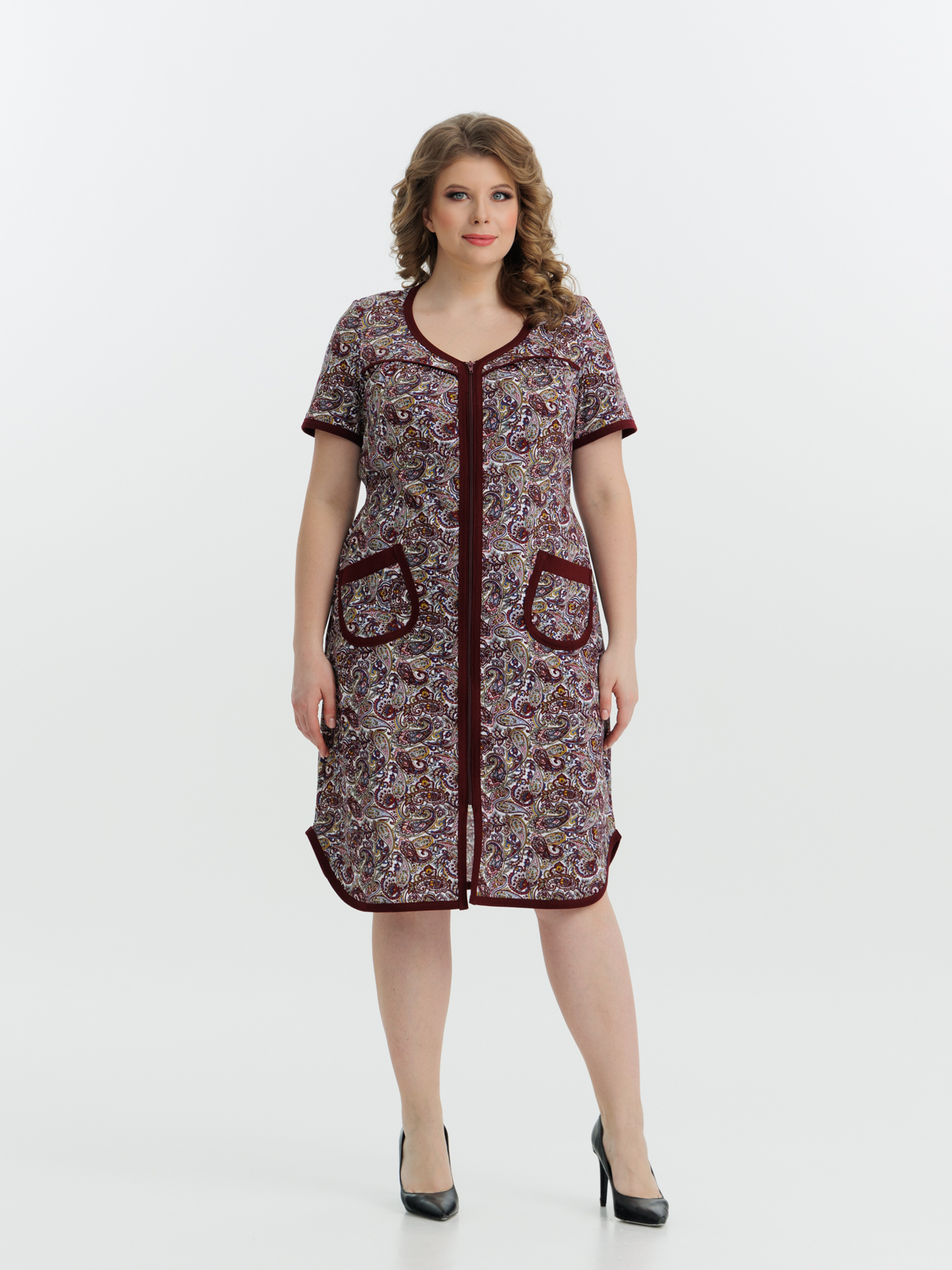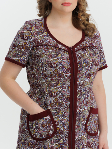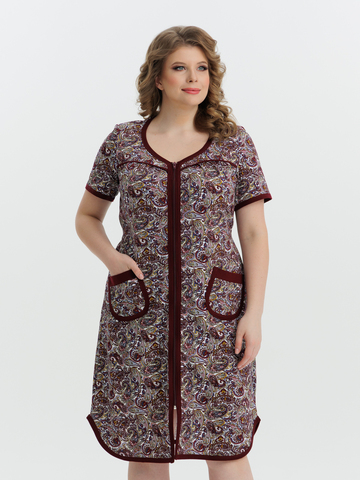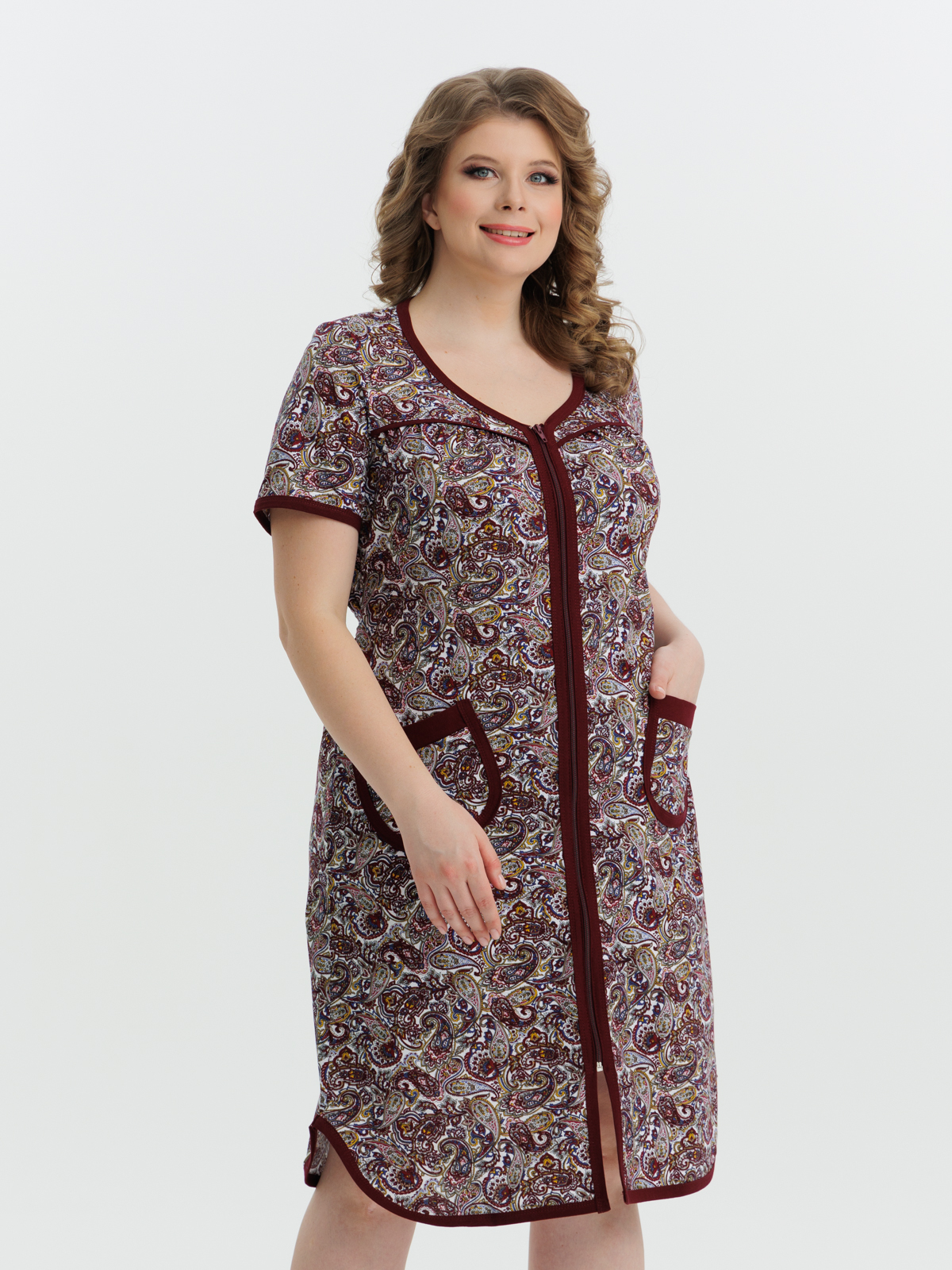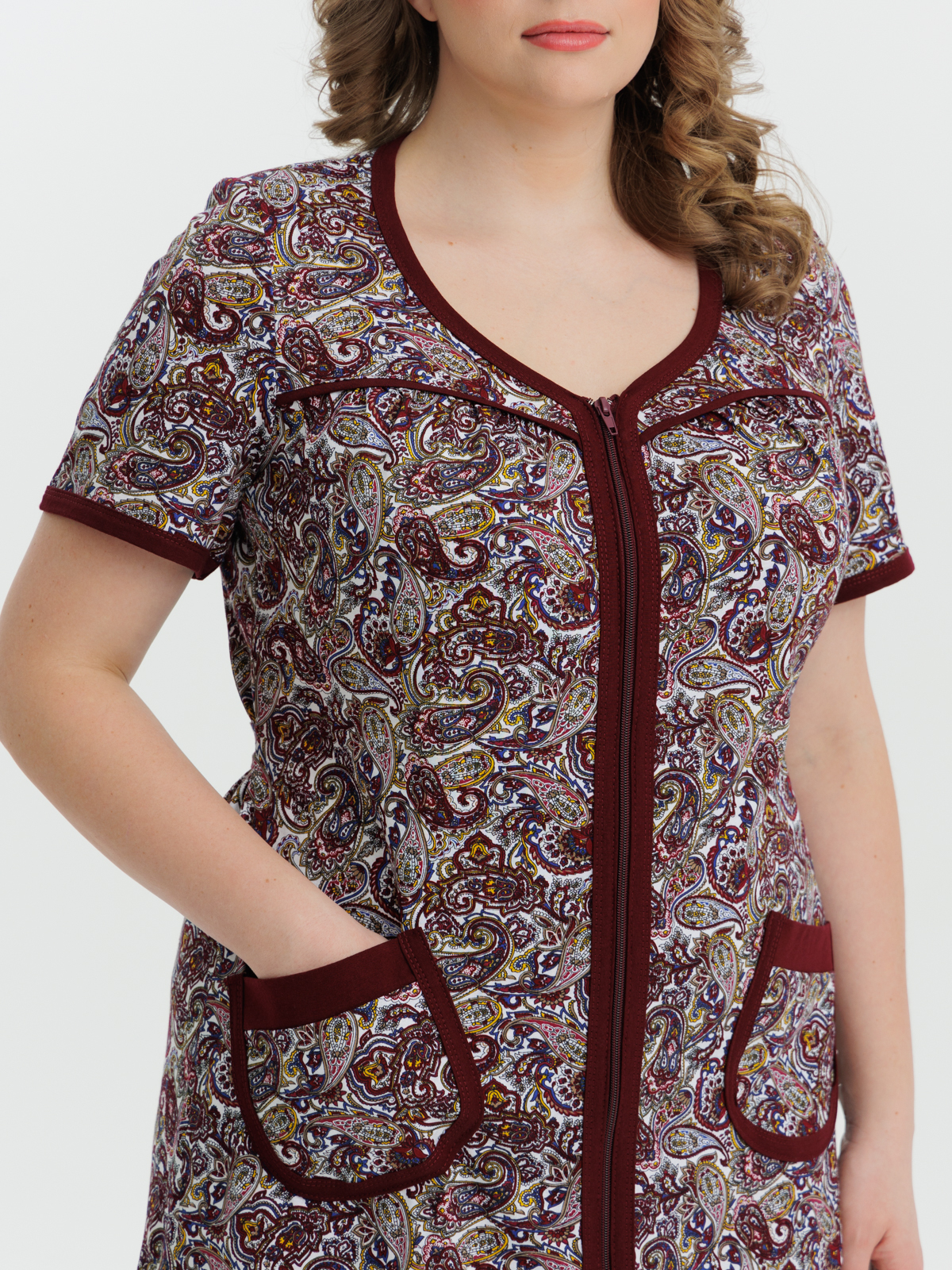 Стильный и яркий халат на молнии, карманами, коротким рукавом и длиной ниже колена, что придает свободу движению. Модель прямого силуэта, полукруглые разрезы по бокам придают изделию изысканный и неотразимый вид, а пояс в боковых швах аккуратно подчеркивает талию. Выполнен из натурального материала хлопка, что создает комфорт в любой день.