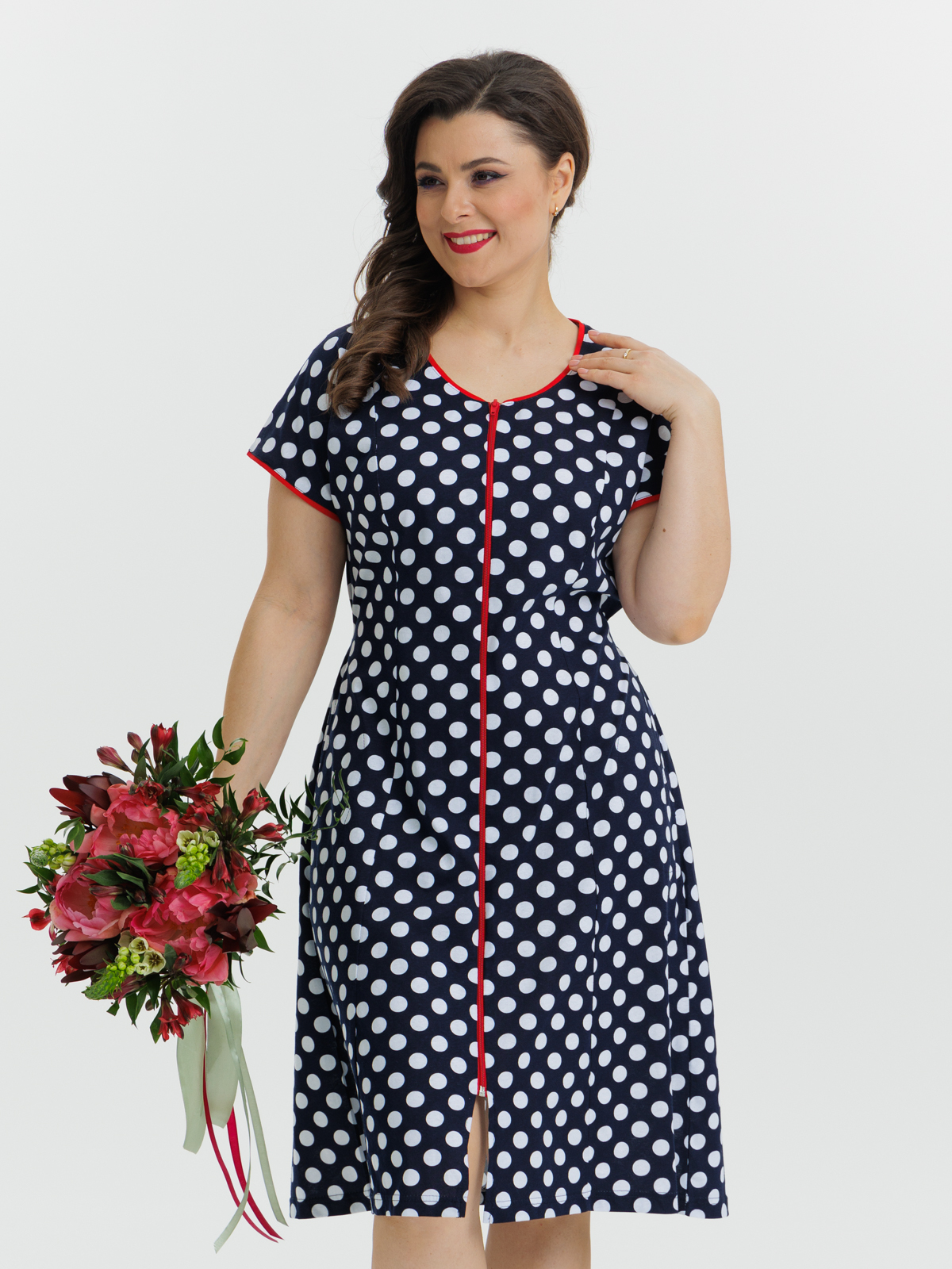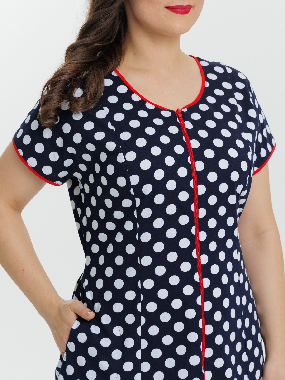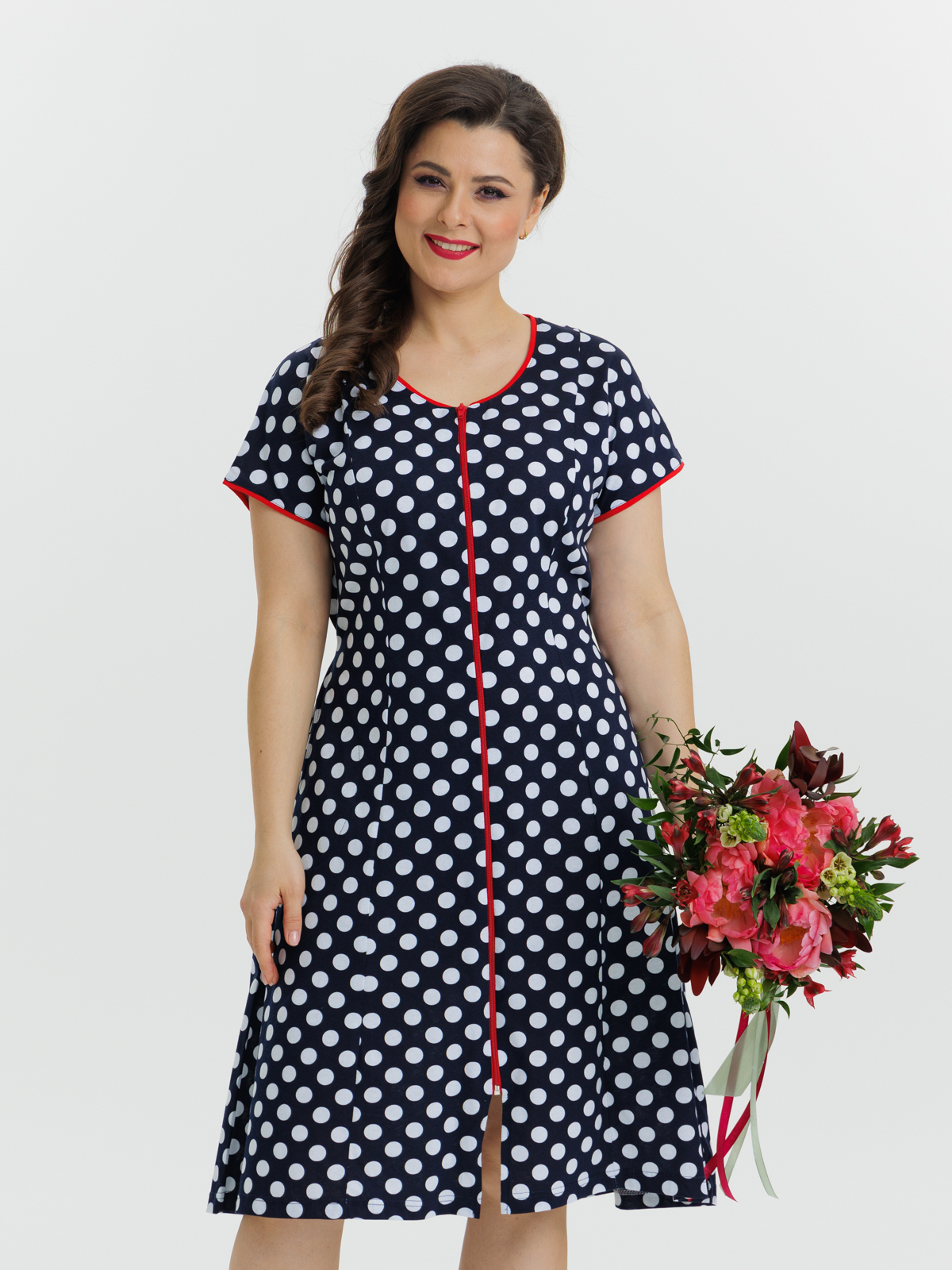 Стильный халат на молнии отлично подойдет как для дома, так и отдыха. Яркие цвета и декоративная отделка по горловине и рукавам придают изделию изысканный вид, а пояс в боковых швах элегантно подчеркивает талию.