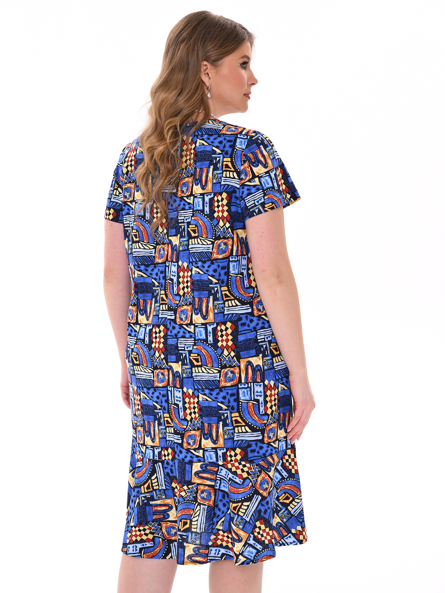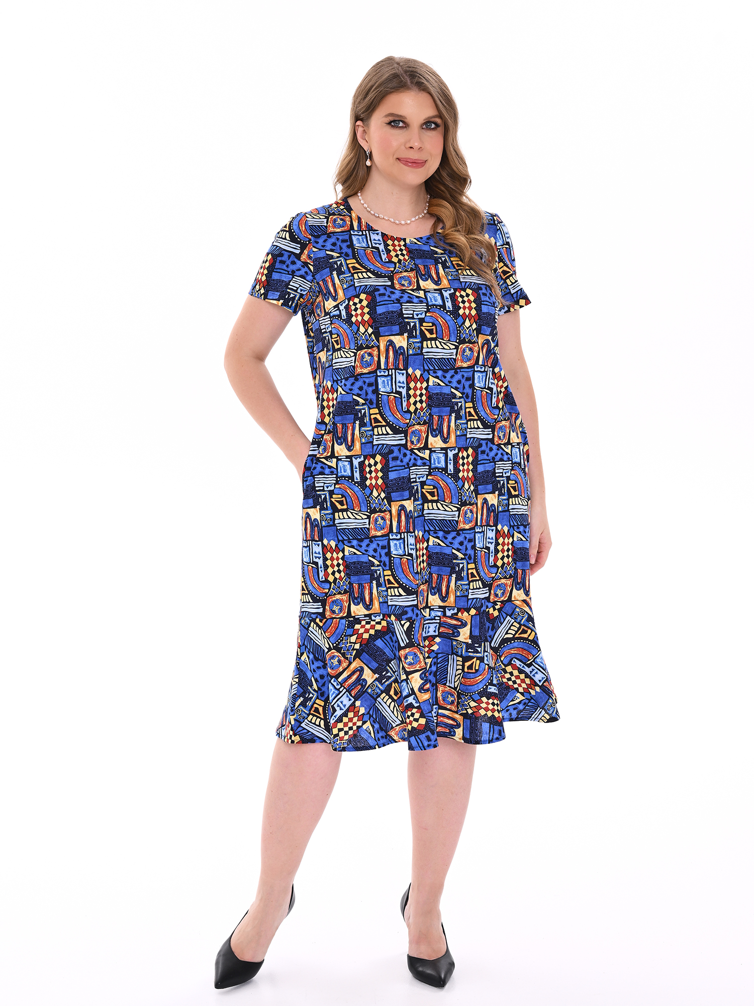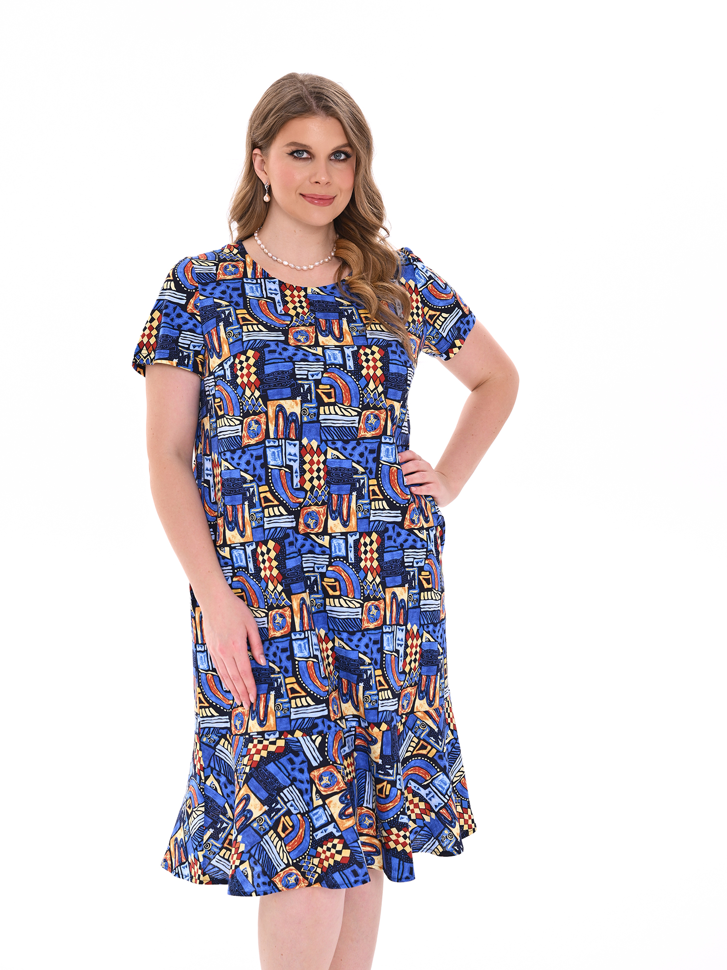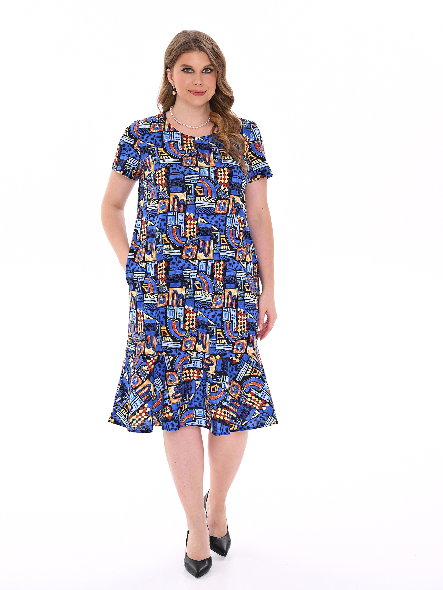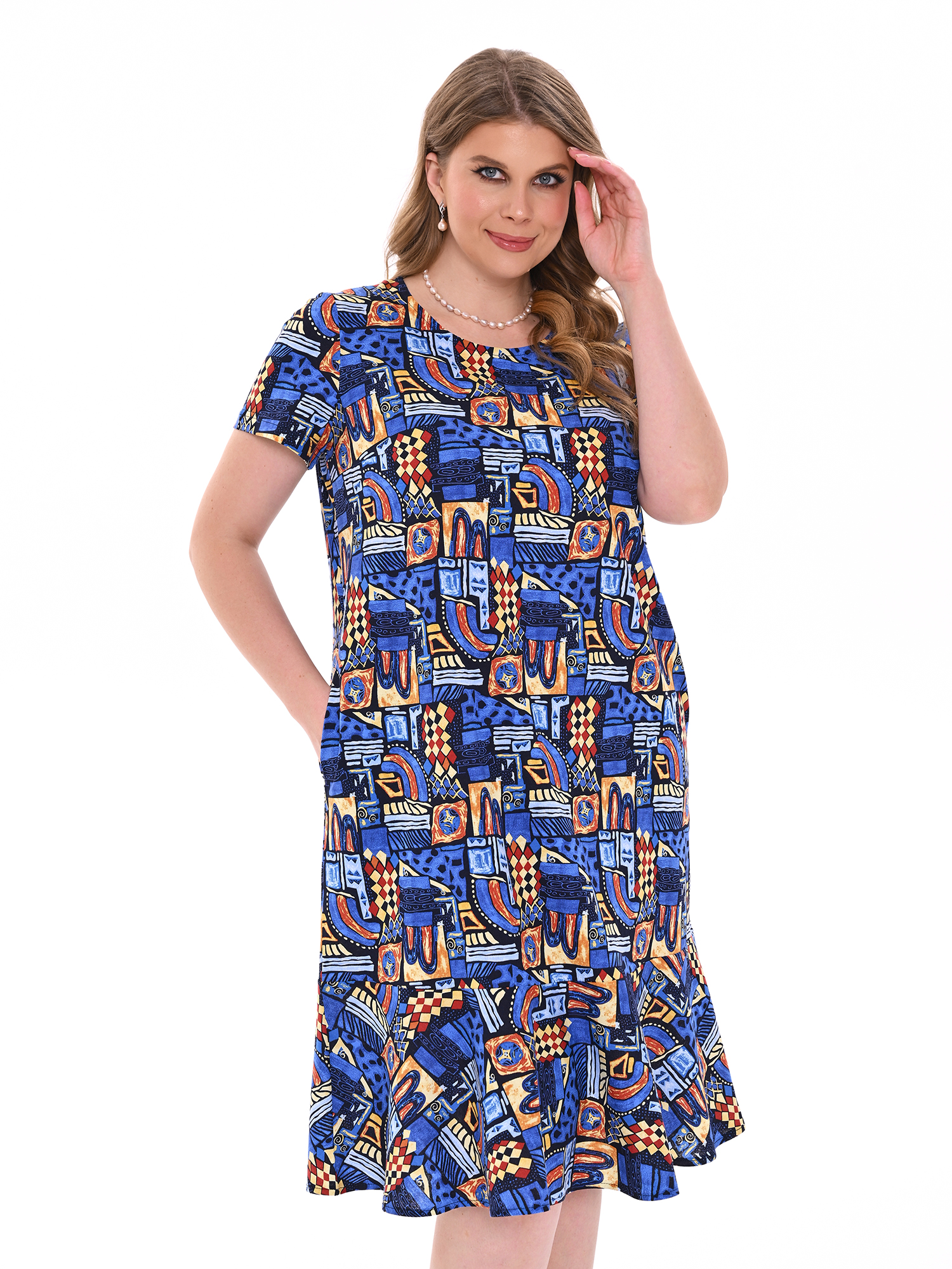 Стильное платье прямого силуэта из хлопка с карманами. Низ изделия оформлен воланом. Платье добавит образу женственности и воздушности.