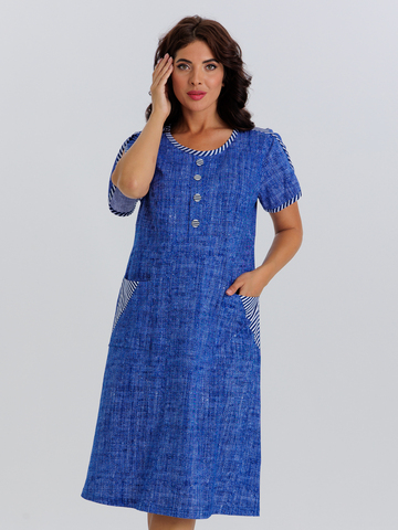 Стильное платье из хлопка с изящным рукавом. Модель прямого силуэта с двумя накладными карманами. Платье подойдет как для повседневной носки, так и для особых случаев.