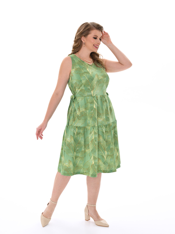 Стильный сарафан полуприлегающего силуэта, без рукава, длиной ниже колен, отрезное по линии завышенной талии. Нижняя часть сарафан состоит из двух деталей, собирающихся на сборку. Круглый вырез горловины и проймы обработаны тонкой бейкой. Идеальный стильный летний наряд для любого случая.