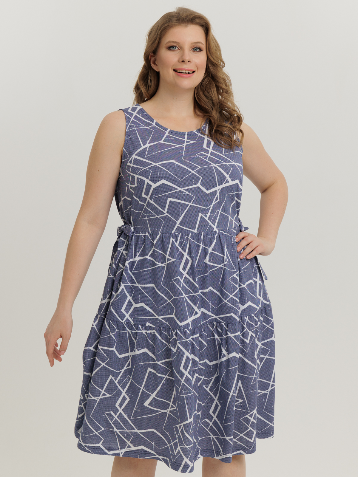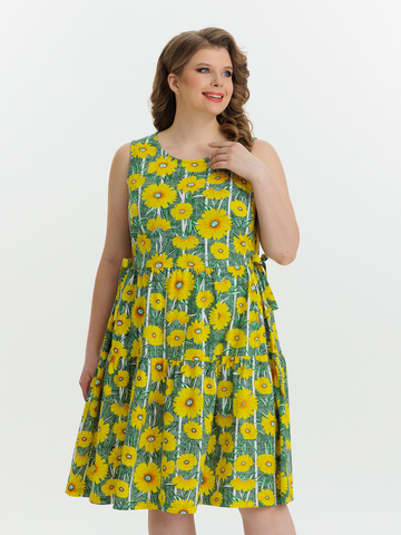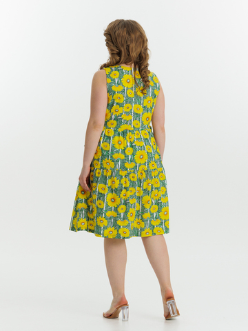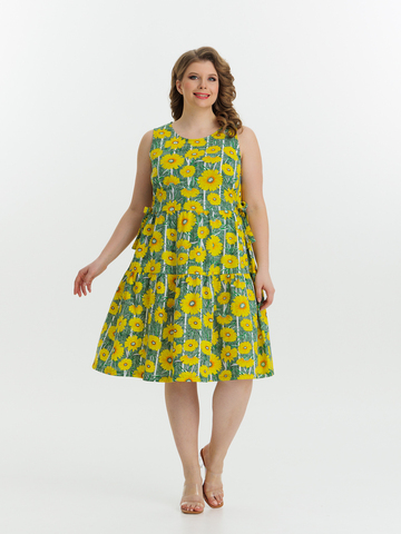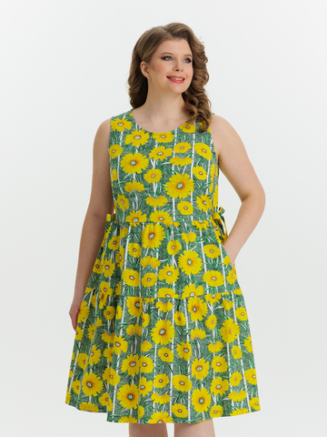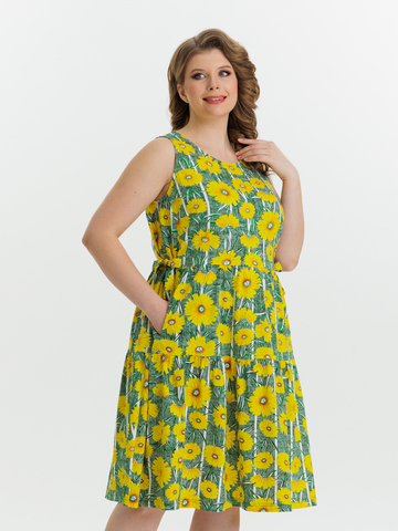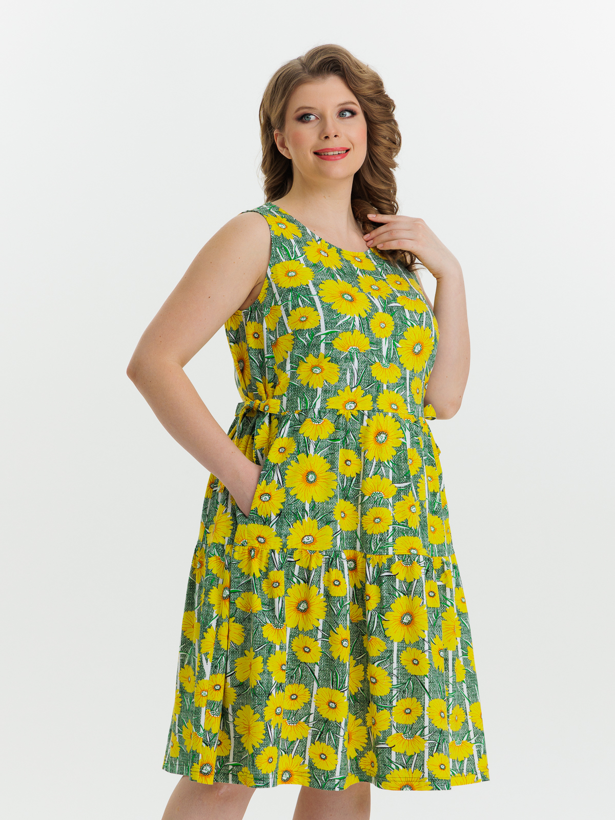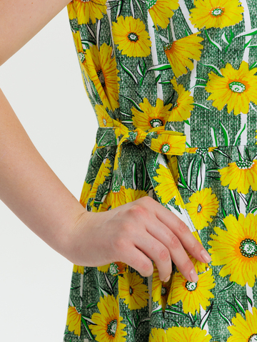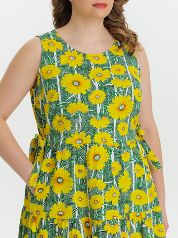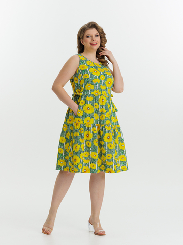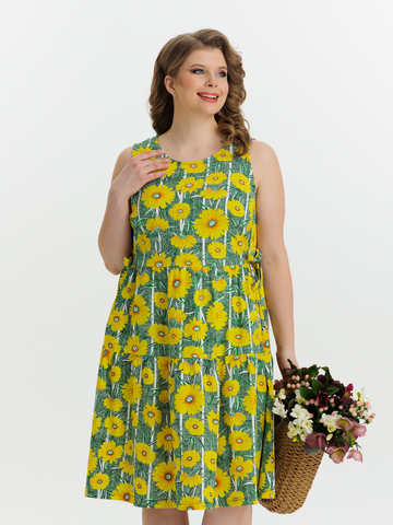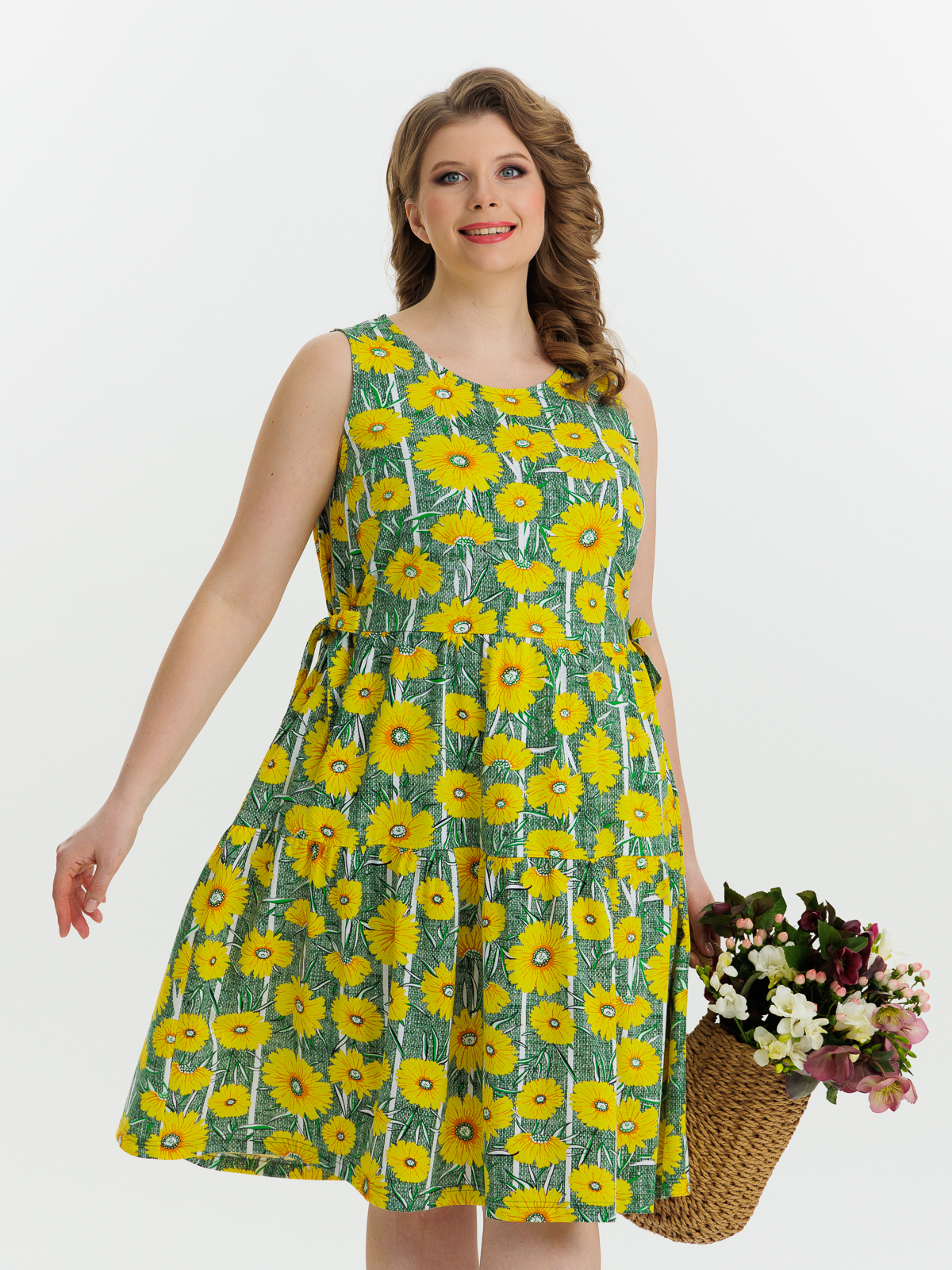 Стильный сарафан полуприлегающего силуэта, без рукава, длиной ниже колен, отрезное по линии завышенной талии. Нижняя часть сарафан состоит из двух деталей, собирающихся на сборку. Круглый вырез горловины и проймы обработаны тонкой бейкой. Идеальный стильный летний наряд для любого случая.