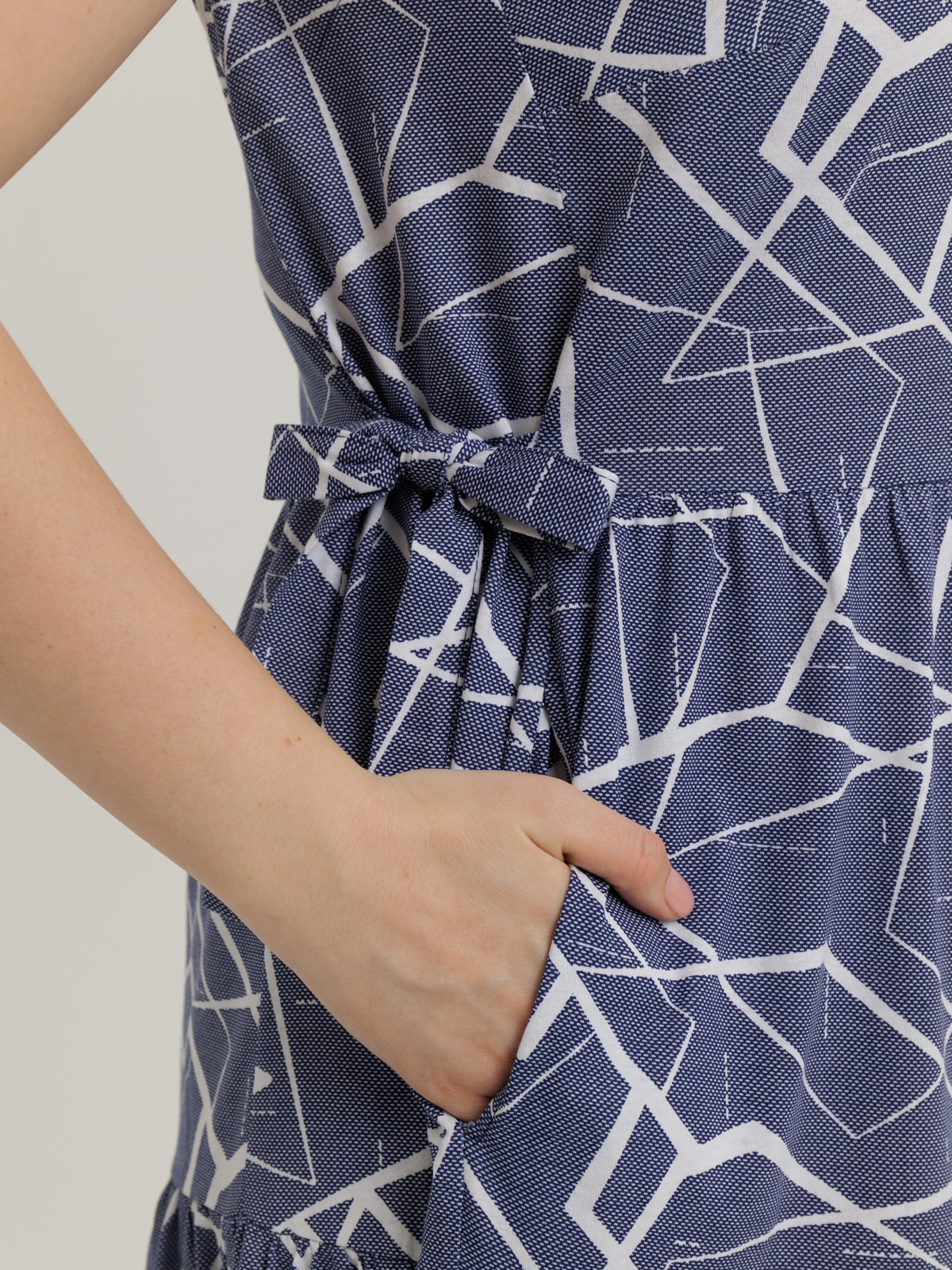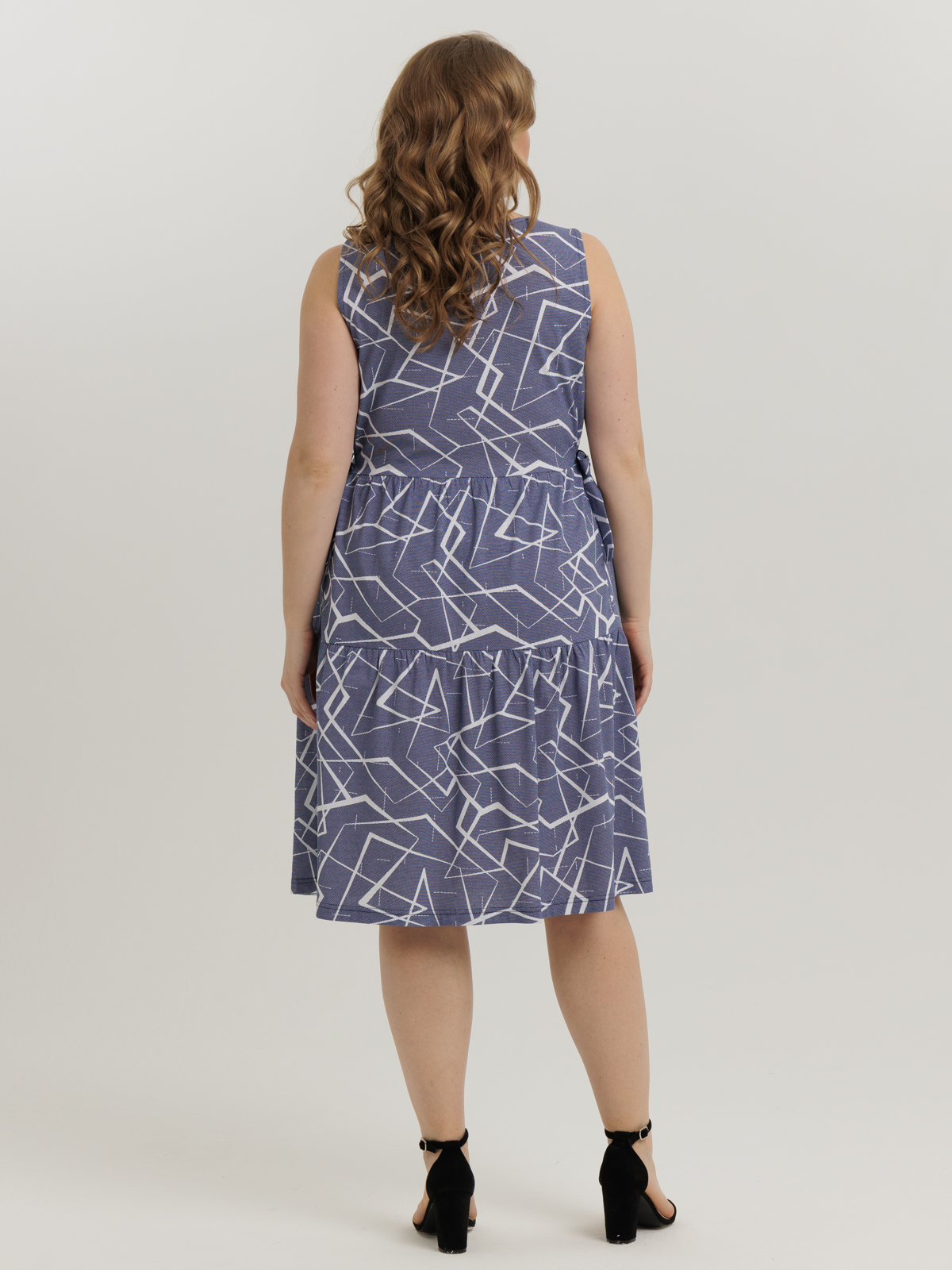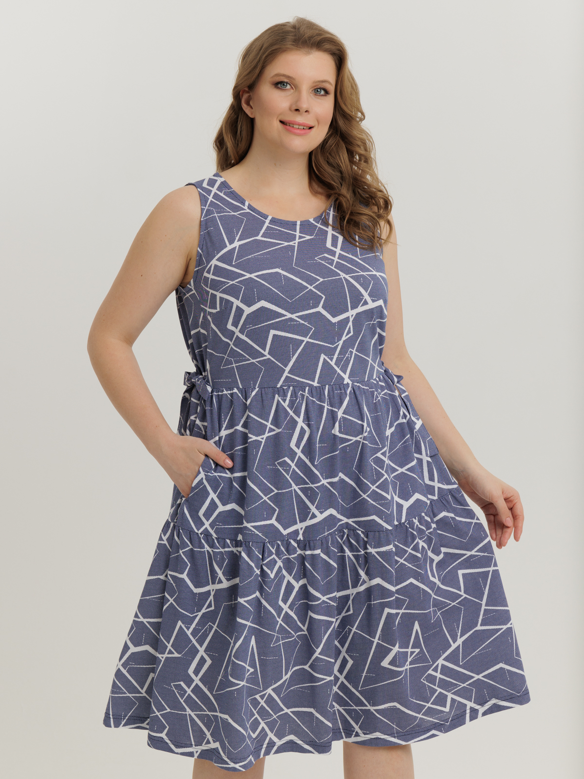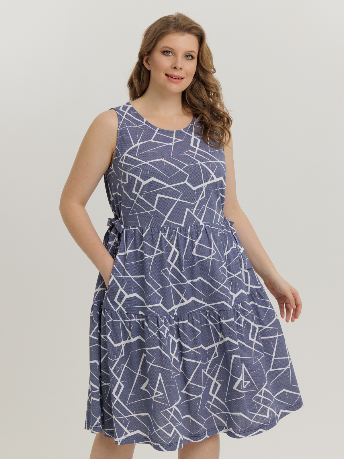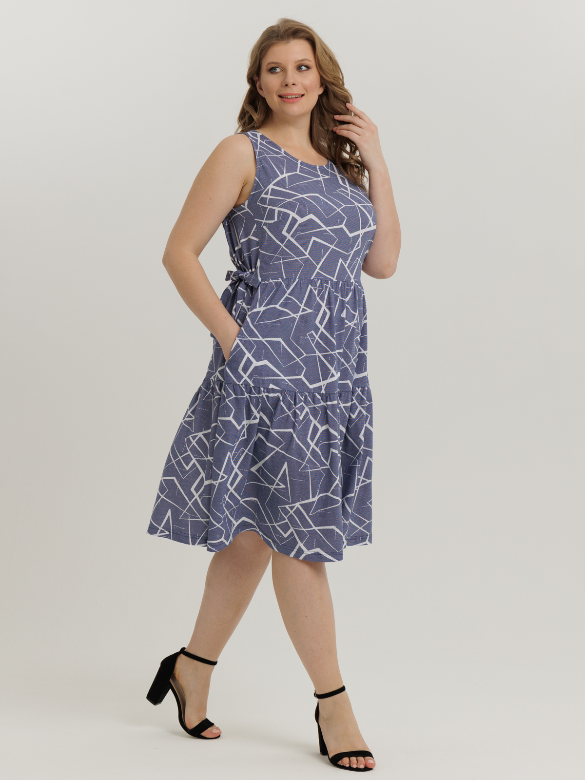 Стильный сарафан полуприлегающего силуэта, без рукава, длиной ниже колен, отрезное по линии завышенной талии. Нижняя часть сарафан состоит из двух деталей, собирающихся на сборку. Круглый вырез горловины и проймы обработаны тонкой бейкой. Идеальный стильный летний наряд для любого случая.
