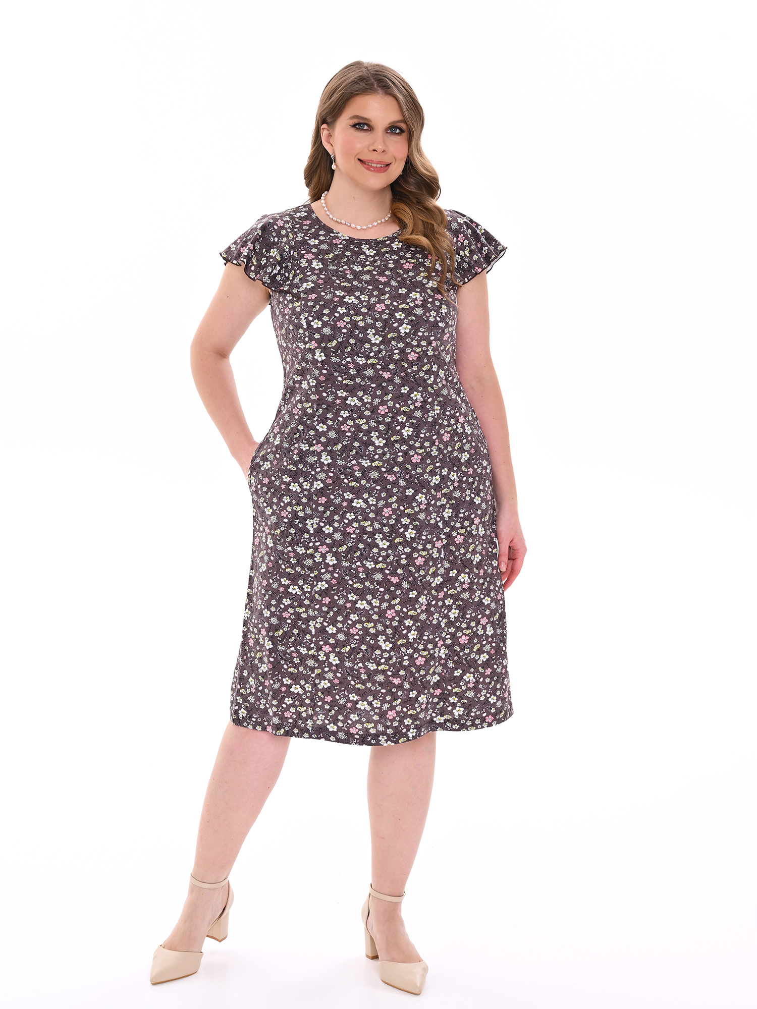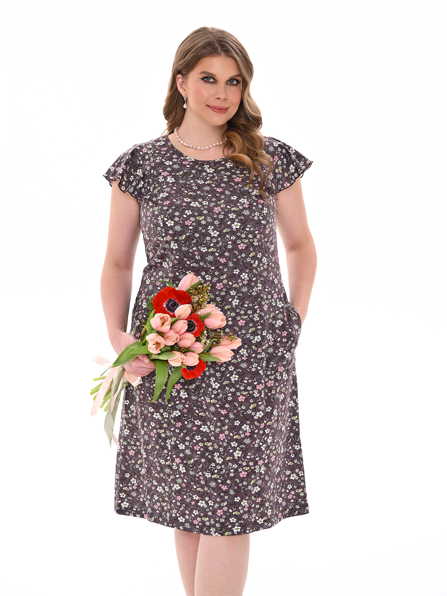Стильное платье из хлопка, с двумя карманами и рукавом крыло. Платье добавит образу женственности и воздушности.