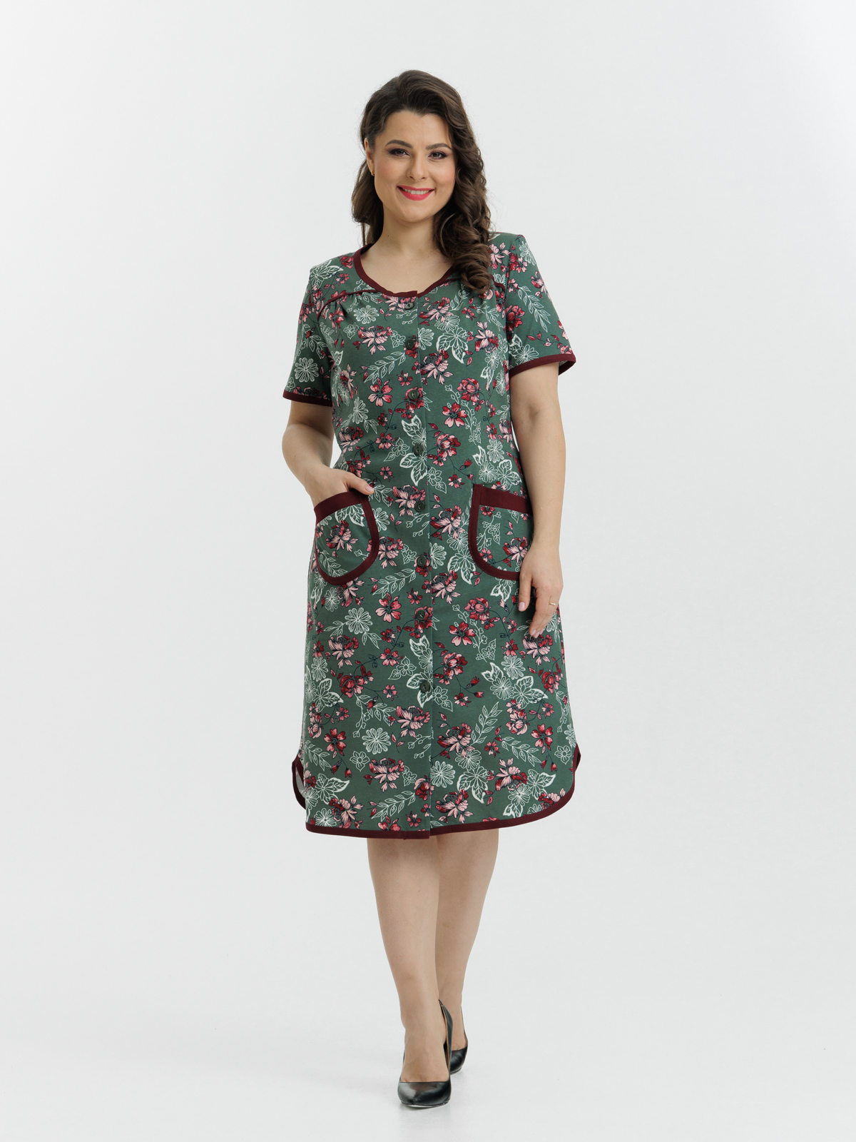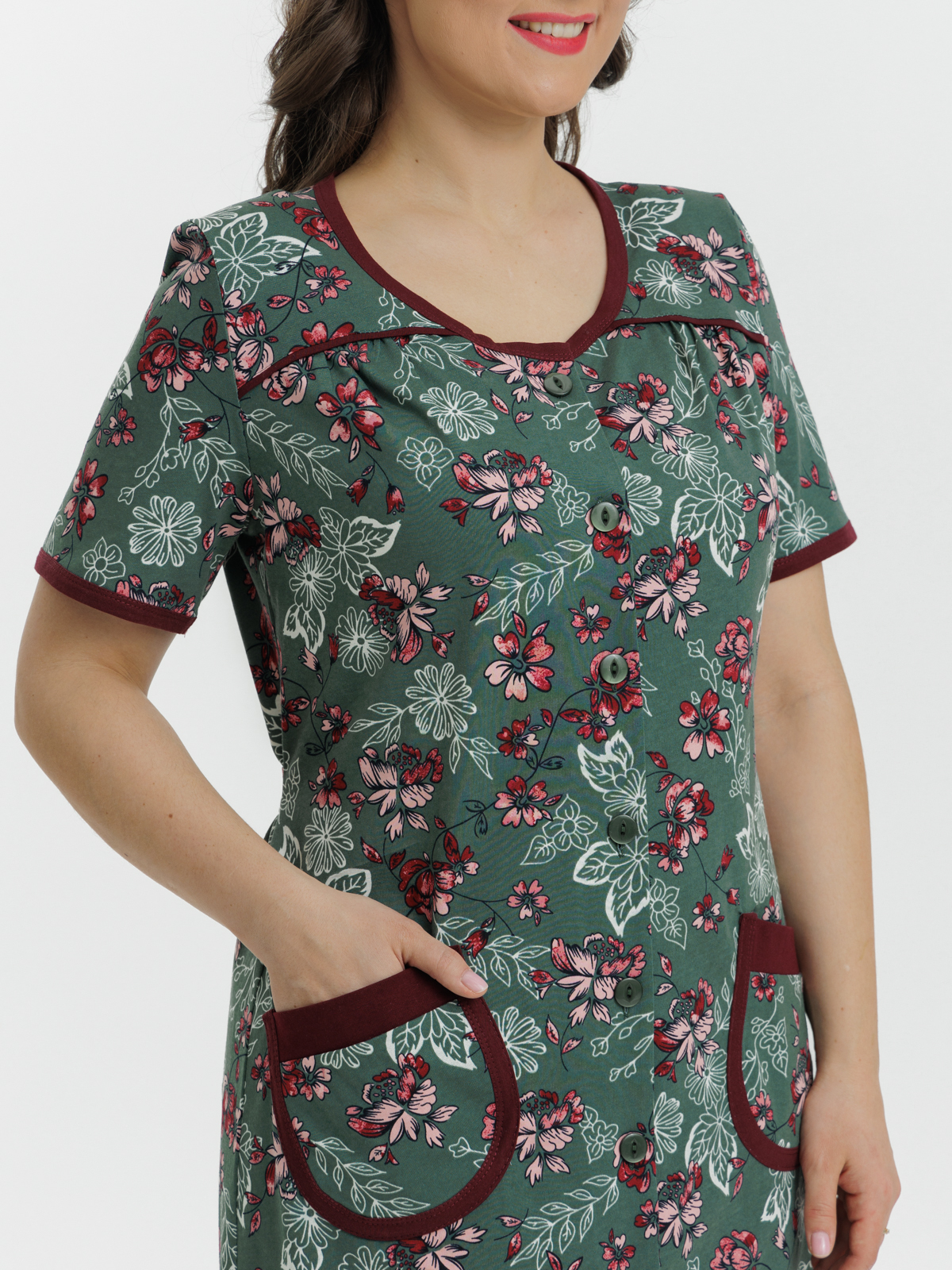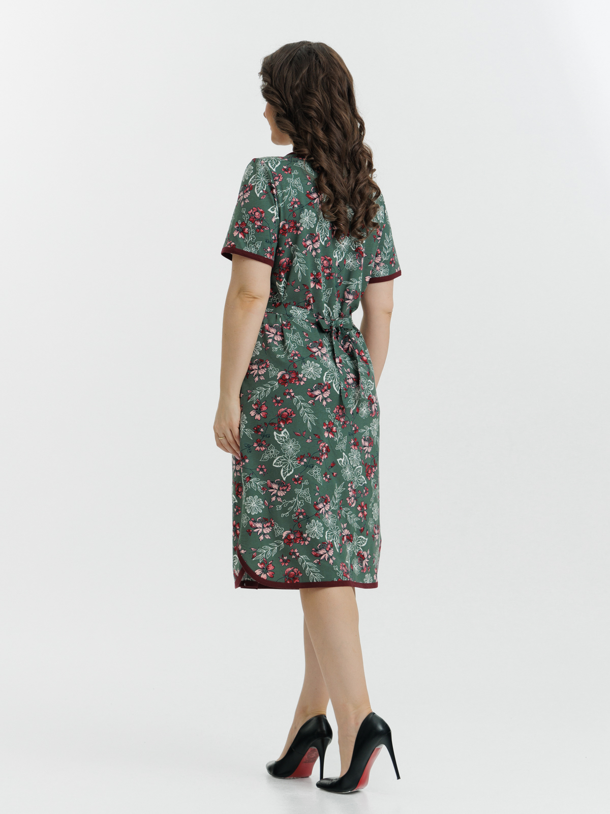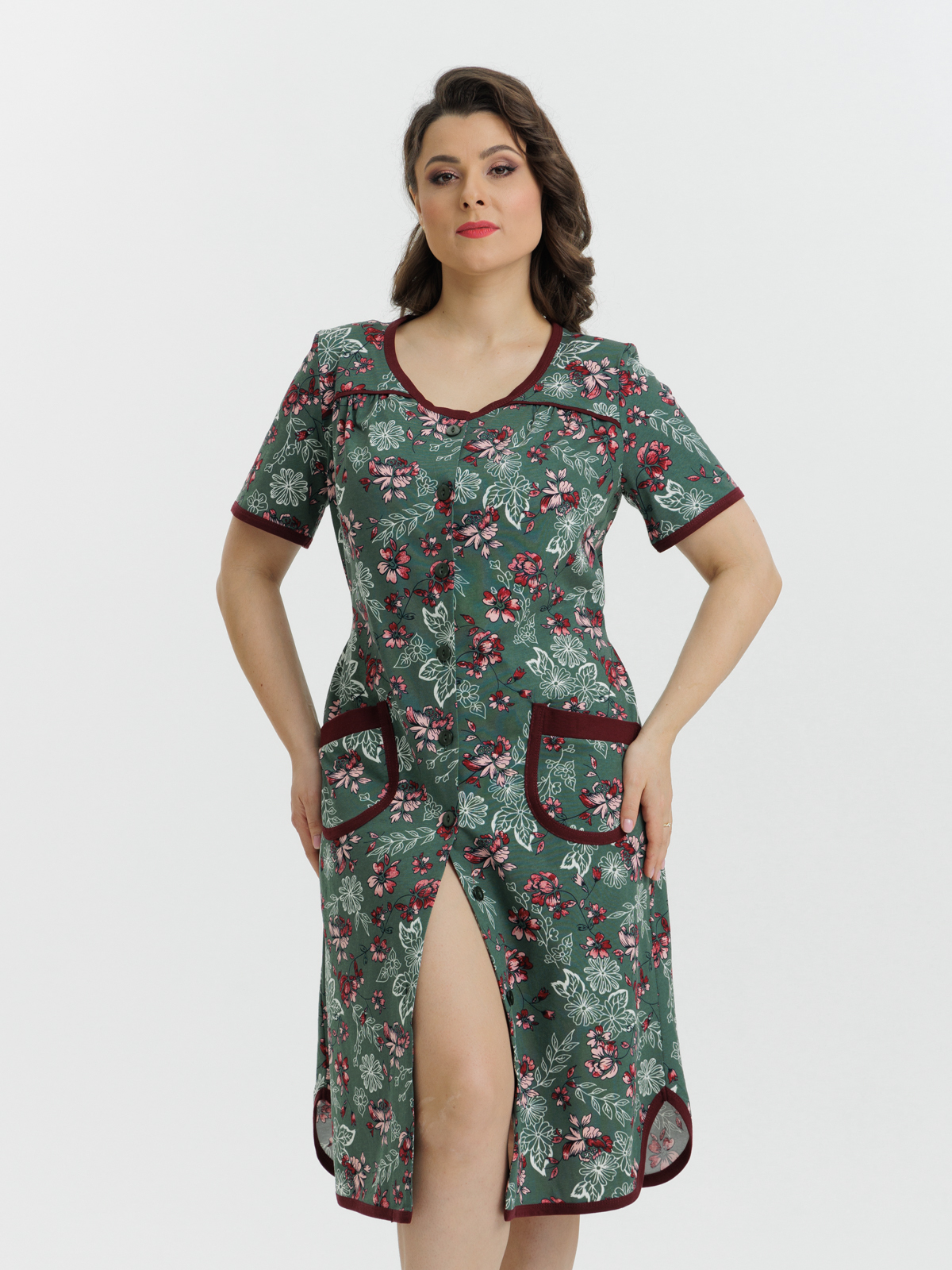 Стильный и яркий халат на пуговицах, карманами, рукавом 3/4 и длиной ниже колена, что придает свободу движению. Модель прямого силуэта, полукруглые разрезы по бокам придают изделию изысканный и неотразимый вид, а пояс в боковых швах аккуратно подчеркивает талию. Выполнен из натурального материала хлопка, что создает комфорт в любой день.