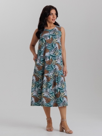 Стильный сарафан из хлопка с карманами. Изделие свободного покроя и воланом на сборке по юбке. Идеальный стильный летний наряд.