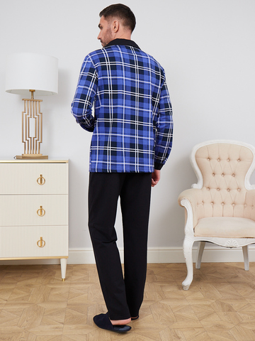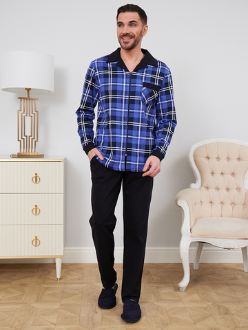 Современный мужской костюм, состоящий из кофты с рубашечным воротником на молнии, имеются нагруднй карман и два накладных кармана. Брюки среднего объёма, цельнокроеный пояс с резинкой. Изделие выполнены из мягкого комфортного материала футера. Отличный вариант для дома и отдыха.
