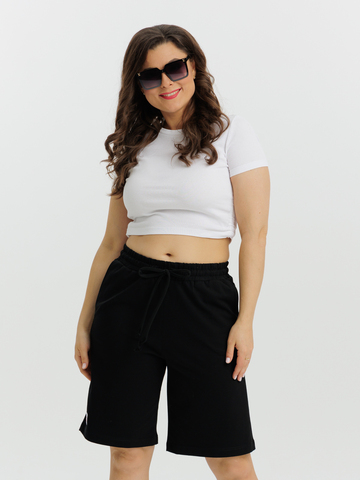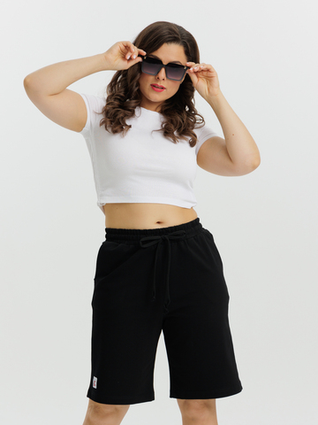 Шорты выполнены из хлопка, изделие очень приятное на ощупь и необыкновенно комфортное в носке. Особенностями данной модели являются высокая посадка и свободный крой, благодаря чему нет скованности движений. У шорт имеются карманы, а также подвороты. Их можно использовать как одежду для дома, пляжа и прогулок.
